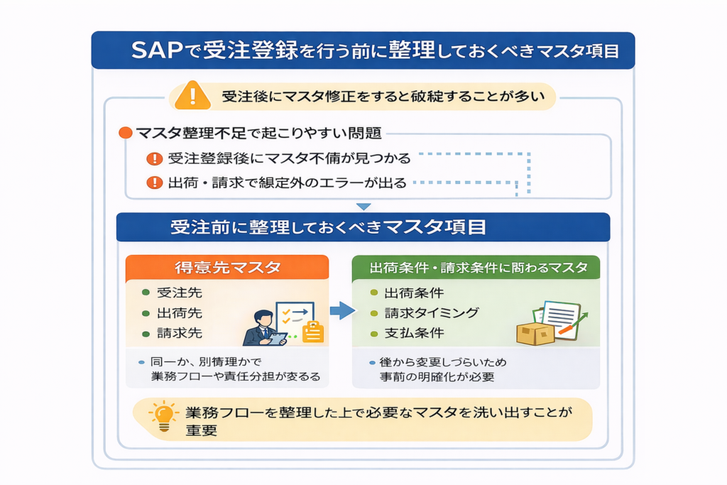 SAPで受注登録を行う前に整理しておくべきマスタ項目について解説します。
