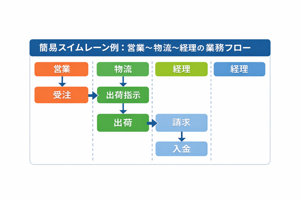 もう一つ有効なのが、スイムレーンを使った整理です。